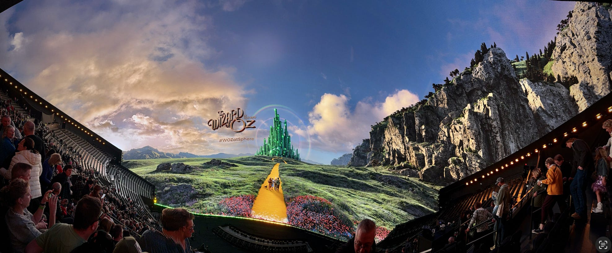 It’s a massive globe. The entire surface is a colossal video (LED) screen they call the Exosphere. It’s perfectly round, 366’ tall and over 500’ in diameter. It seats over 18,000, and the interior globe is nearly all a seamless 16K high-resolution video display. Before this, I considered IMAX to be the pinnacle of cinematic awe. But I hadn’t yet experienced The Sphere.